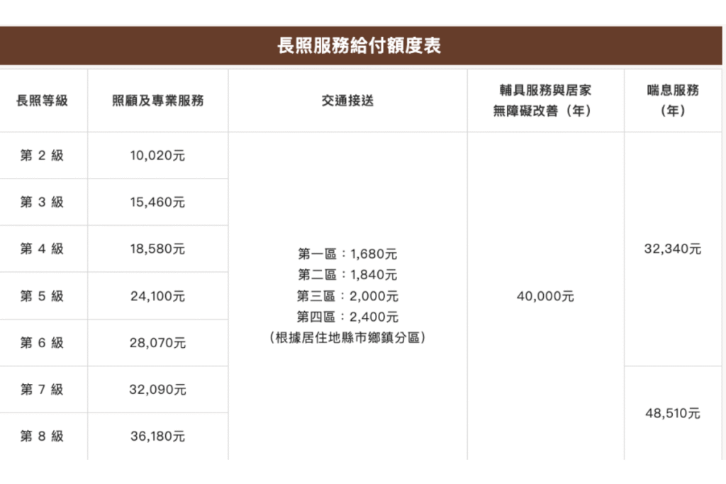 補助金額依「長照等級」與「家庭經濟狀況」決定: